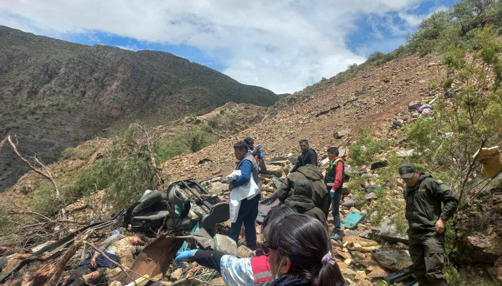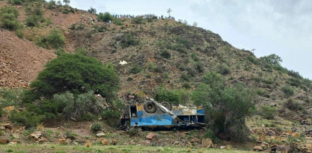 Trágico: un bus se embarranca unos 800 mts y causa la muerte de 28 personas, 14 heridos entre Oruro-Potosí