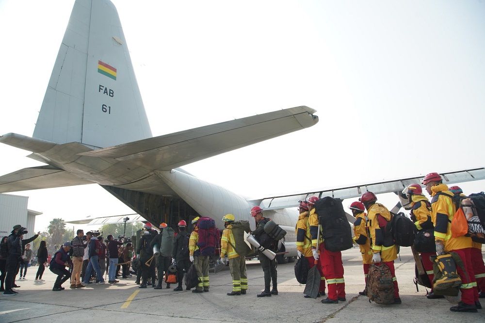 “Hoy nos toca enviar este nuevo contingente, lo hacemos desde Cochabamba. Los hermanos en Santa Cruz requieren del esfuerzo y el trabajo de los bomberos, policías y de las Fuerzas Armadas”, afirmó instantes antes de que los efectivos aborden la aeronave Hércules.