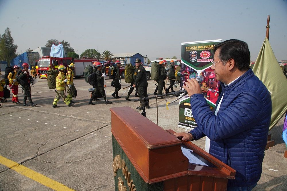 “Sabemos que van a volver a Cochabamba con el deber cumplido, con haber derrotado ese fuego intenso que estamos viendo en el departamento de Santa Cruz”, afirmó el Presidente.