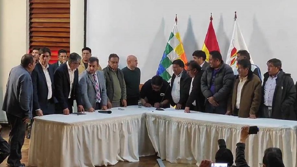 La Paz, Innovapress, 26 mar 2026.- Luego de una negociación que se prolongó por más de dos horas entre cinco ministros de Estado y la dirigencia del transporte sindicalizado y libre de La Paz y tras el compromiso gubernamental de la verificación internacional de la calidad del combustible y la agilización del resarcimiento económico por los motores dañados se puso fin al paro indefinido que asumió este gremio.