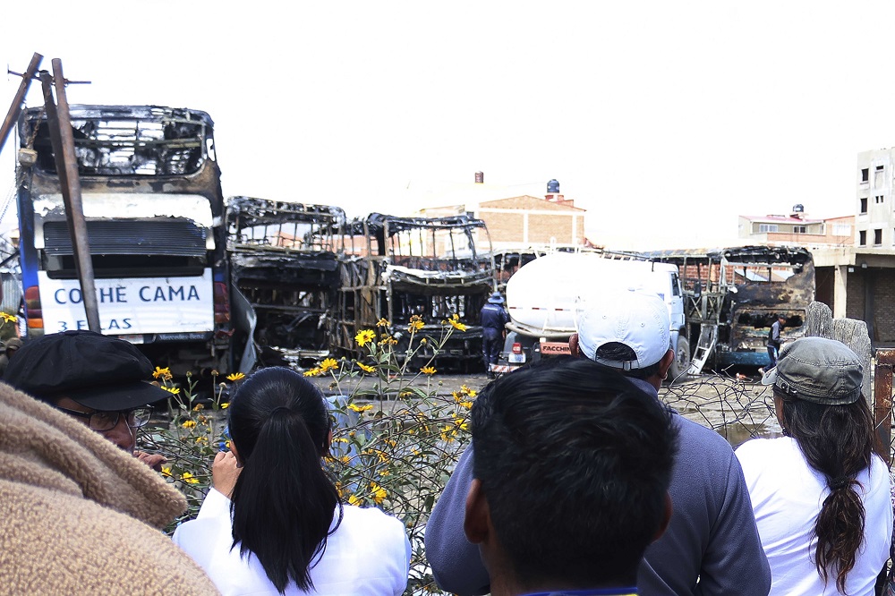 En ese estado quedaron las flotas luego del incendio en Oruro/ Romina Arancibia-agencia APG